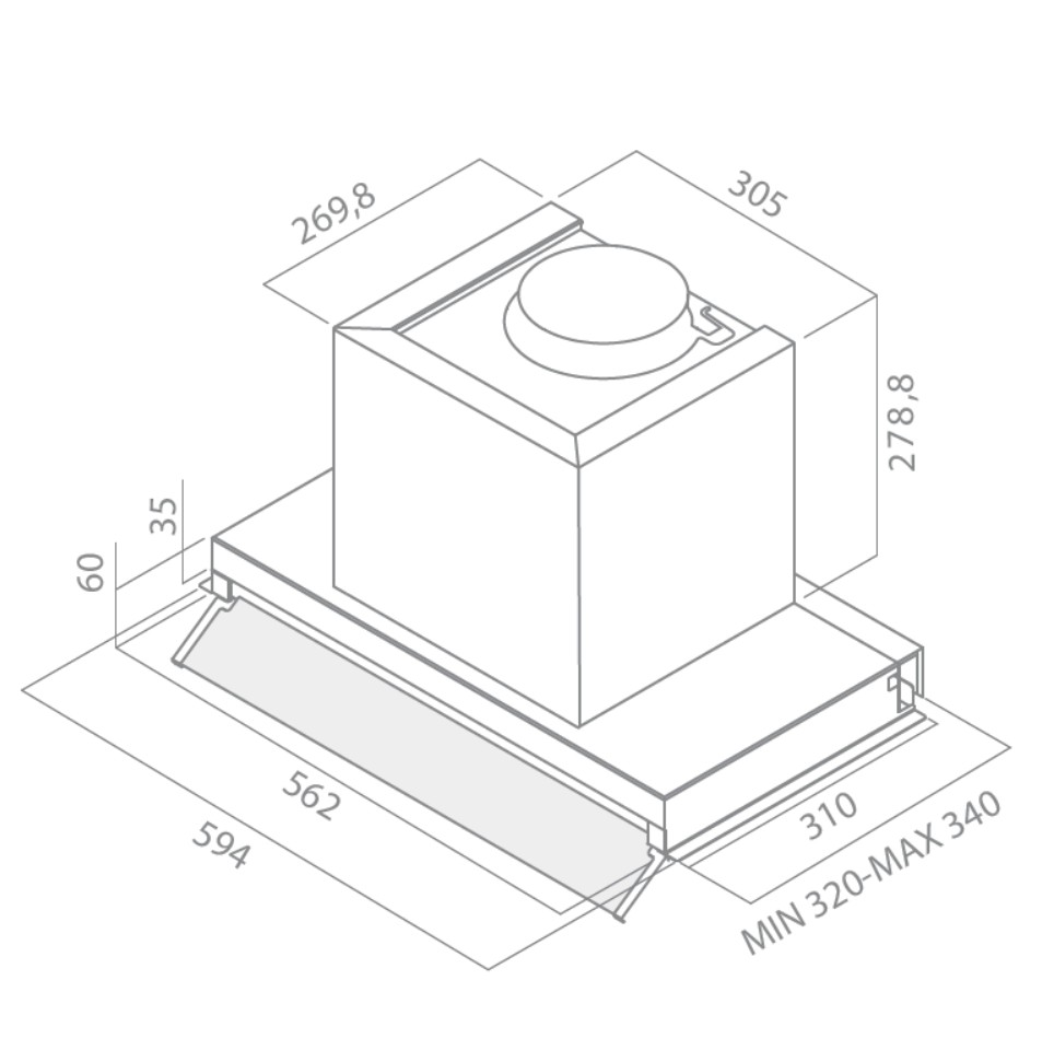 Kompakt 60 cm emhætte uden bund – med motor
