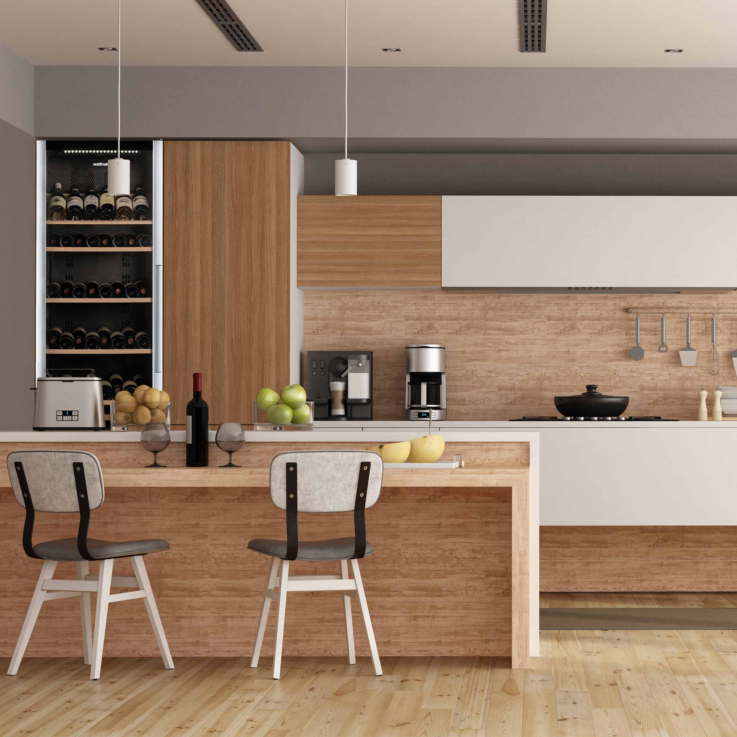 En træhylde vil være bedre til at tage imod de små rystelser, der er i vinkøleskabet, end en hylde i plastik eller metal