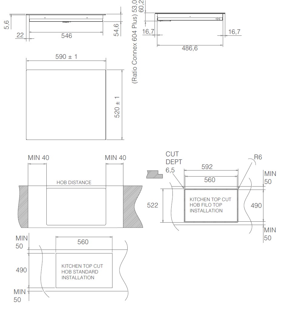 • Produkt (BxDxH) 590 x 520 x 60,2 mm