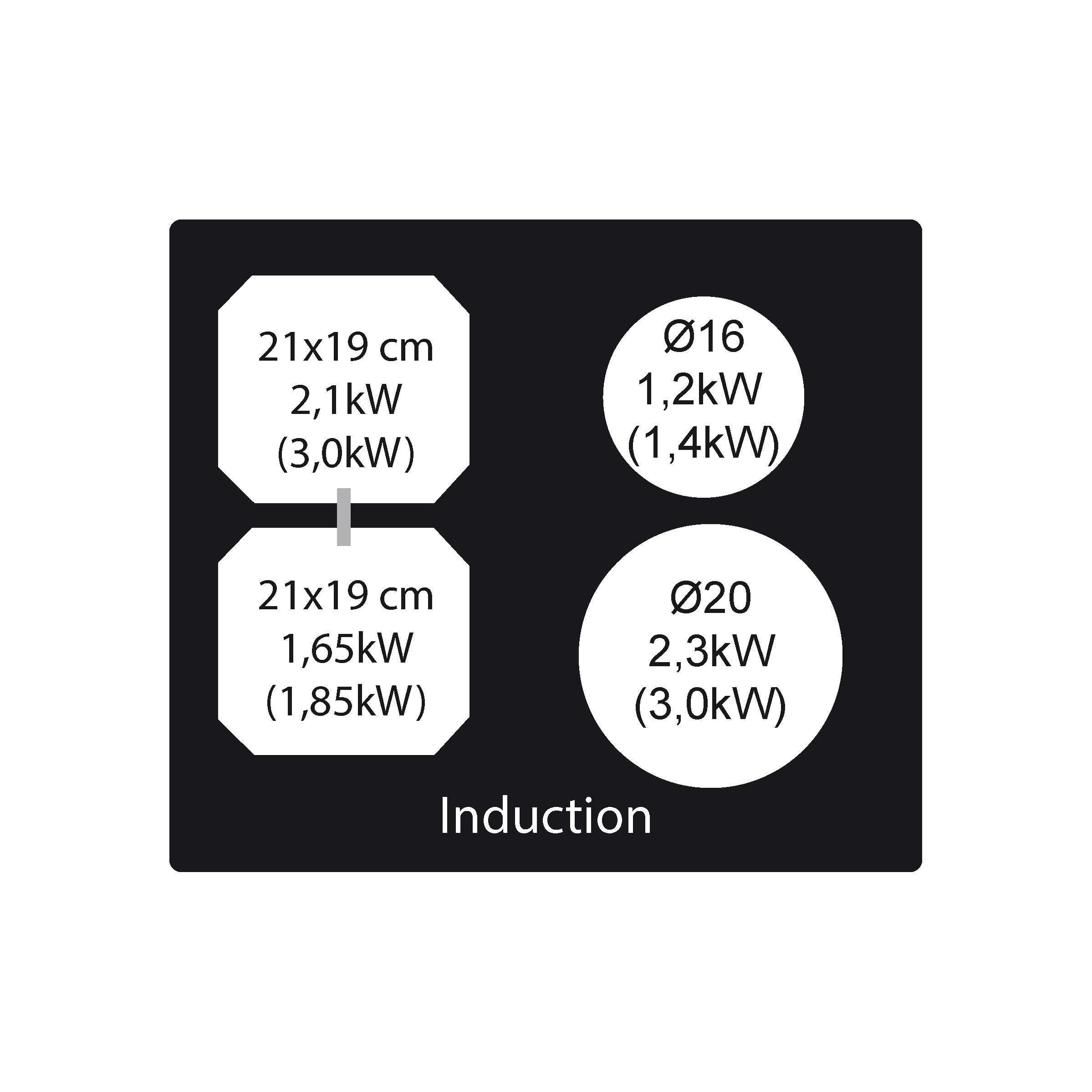 Induktionskogeplade - 4 zoner - Sort - Bredde 590 mm