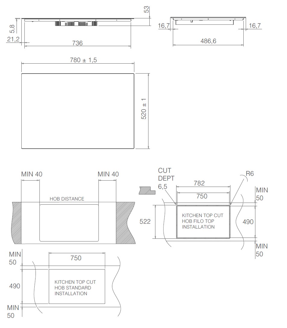 - Indbygning (BxDxH): 750 x 490 x 53 mm