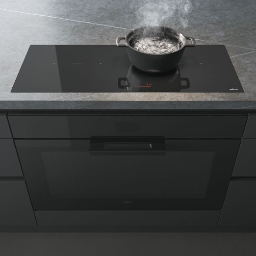 - Ekstra bred 87 cm induktionskogeplade med fem kogezoner og bridge-funktion. Perfekt til omfattende madlavning i et stilfuldt sort design.
