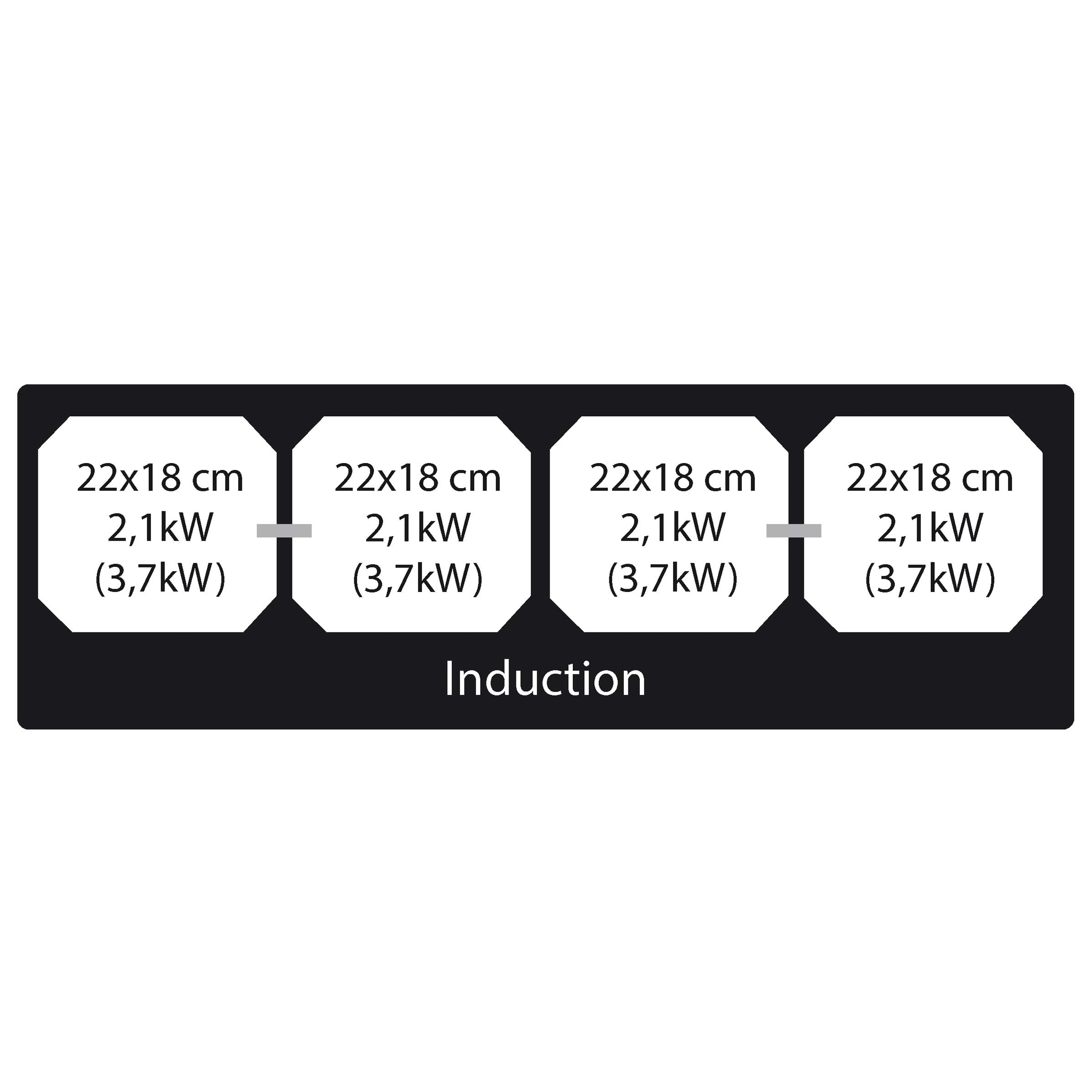 Induktionskogeplade - 4 zoner - Sort - Bredde 870 mm