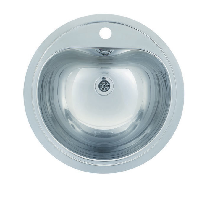 Rund badvask i stål. For under- eller planlimning - Højglanspoleret rustfrit stål