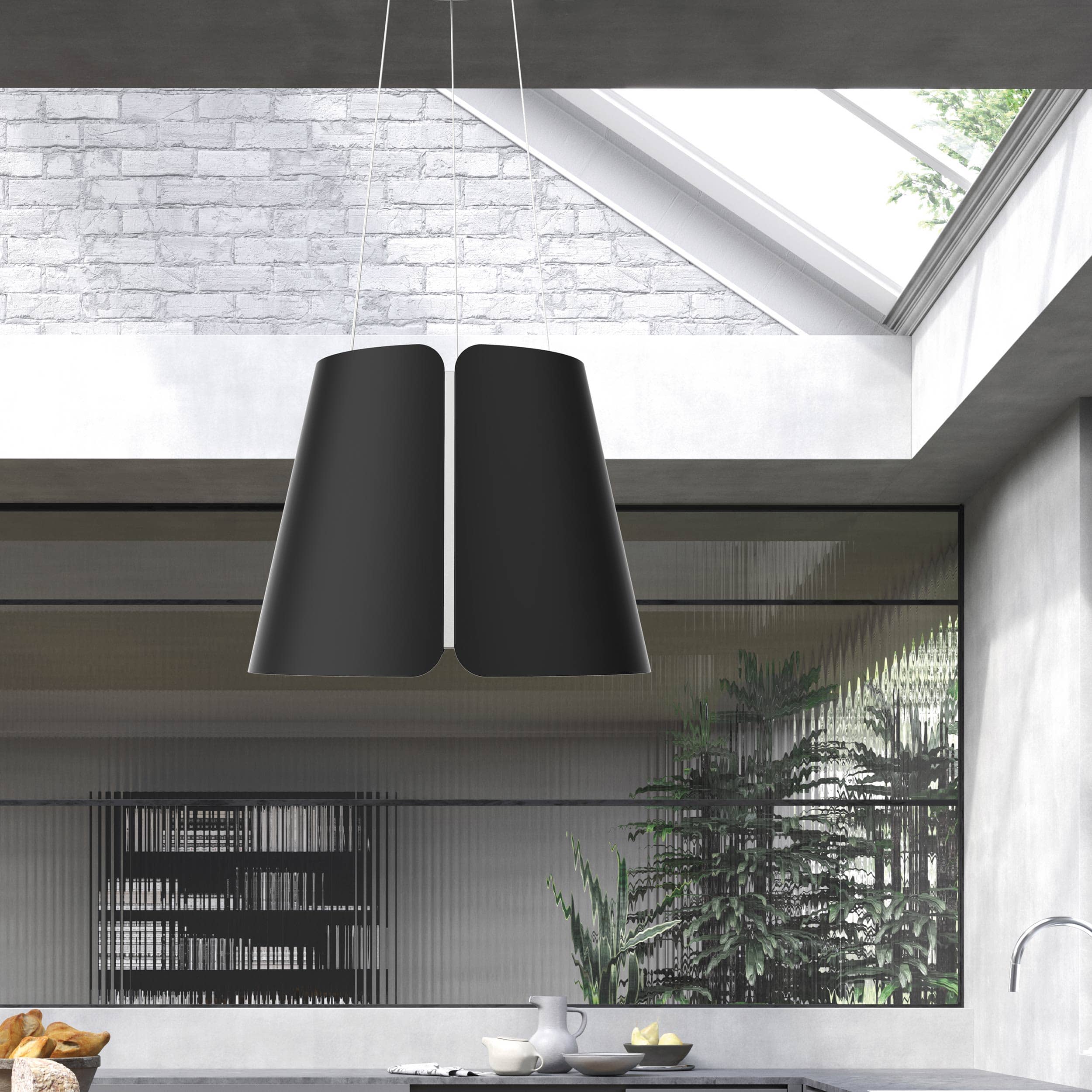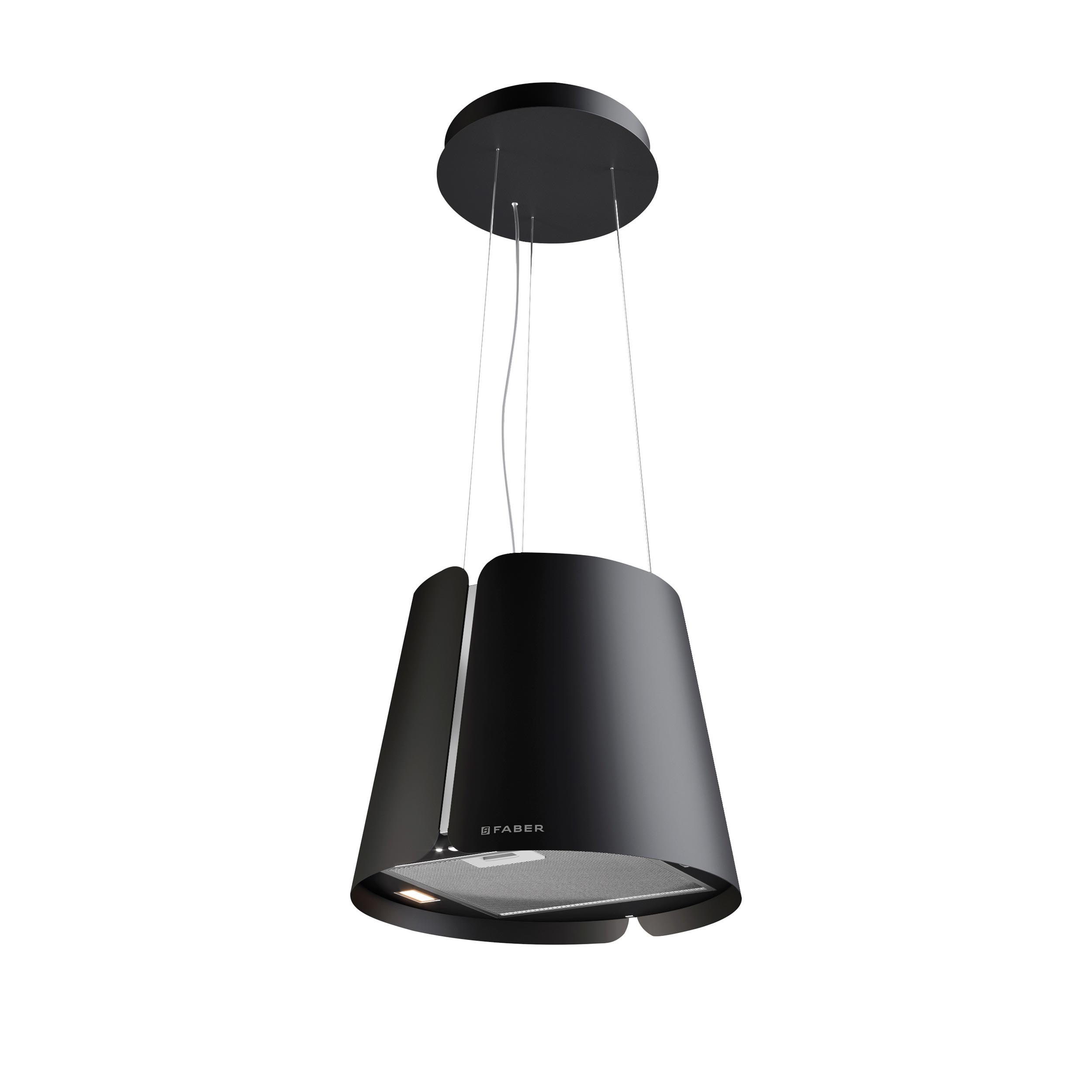 Frithængende wirehængt emfang. Med intern motor & recirkulationsfilter - Sort matt - Ø430 mm - A