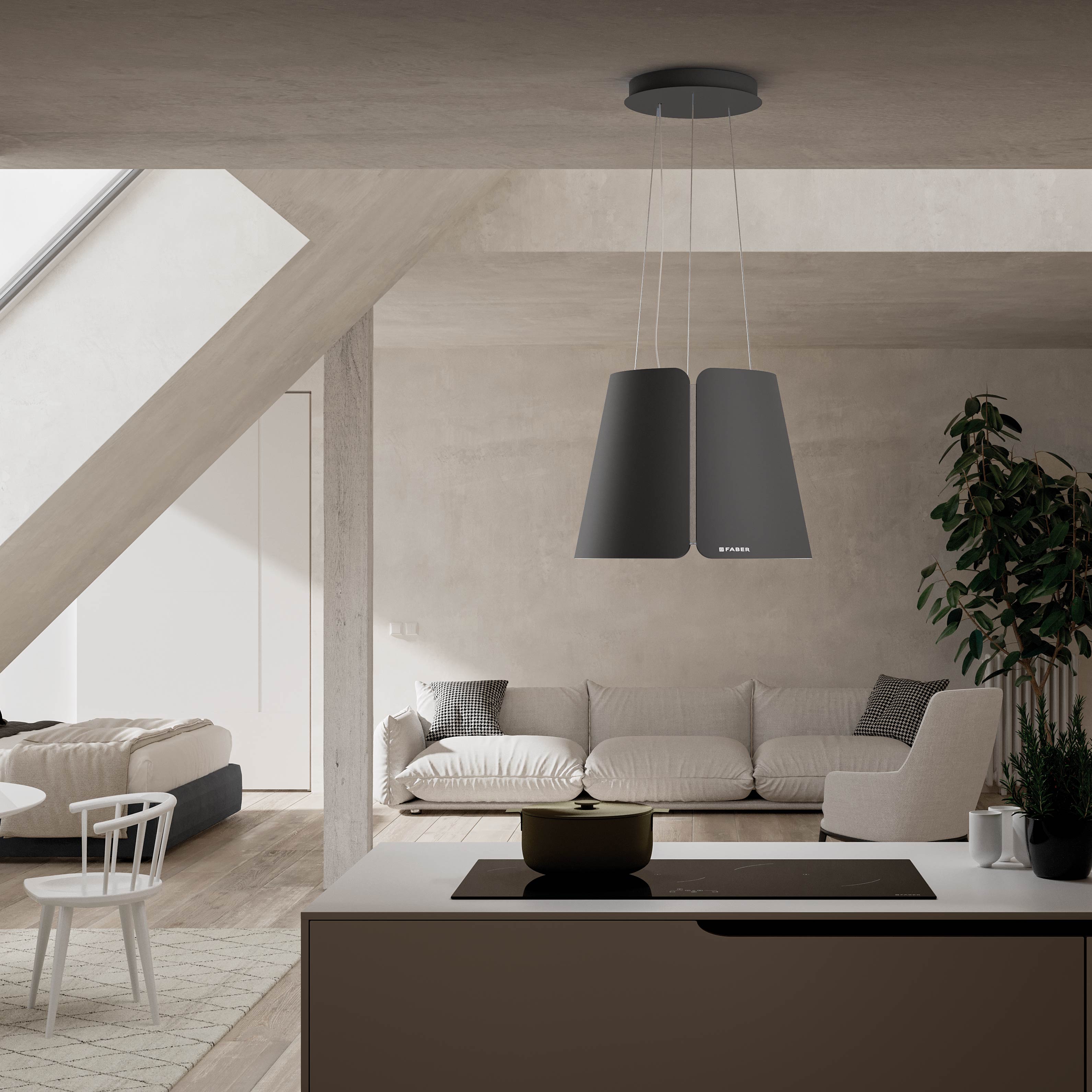Frithængende wirehængt emfang. Med intern motor & recirkulationsfilter - Dark Grey Matt - Ø430 mm - A
