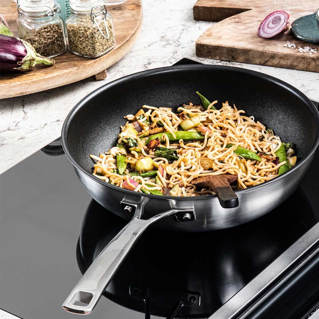 • Den keramiske belægning sikrer, at maden ikke brænder fast