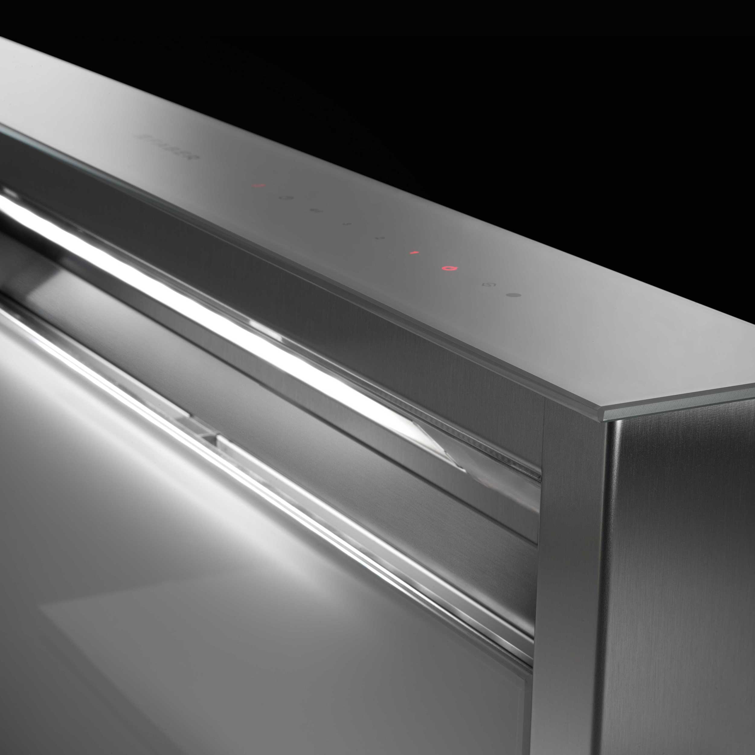 Emfang for indbygning i bordplade. Med indbygget flytbar motor - Rustfrit stål / crystal white glas - 880 mm - A